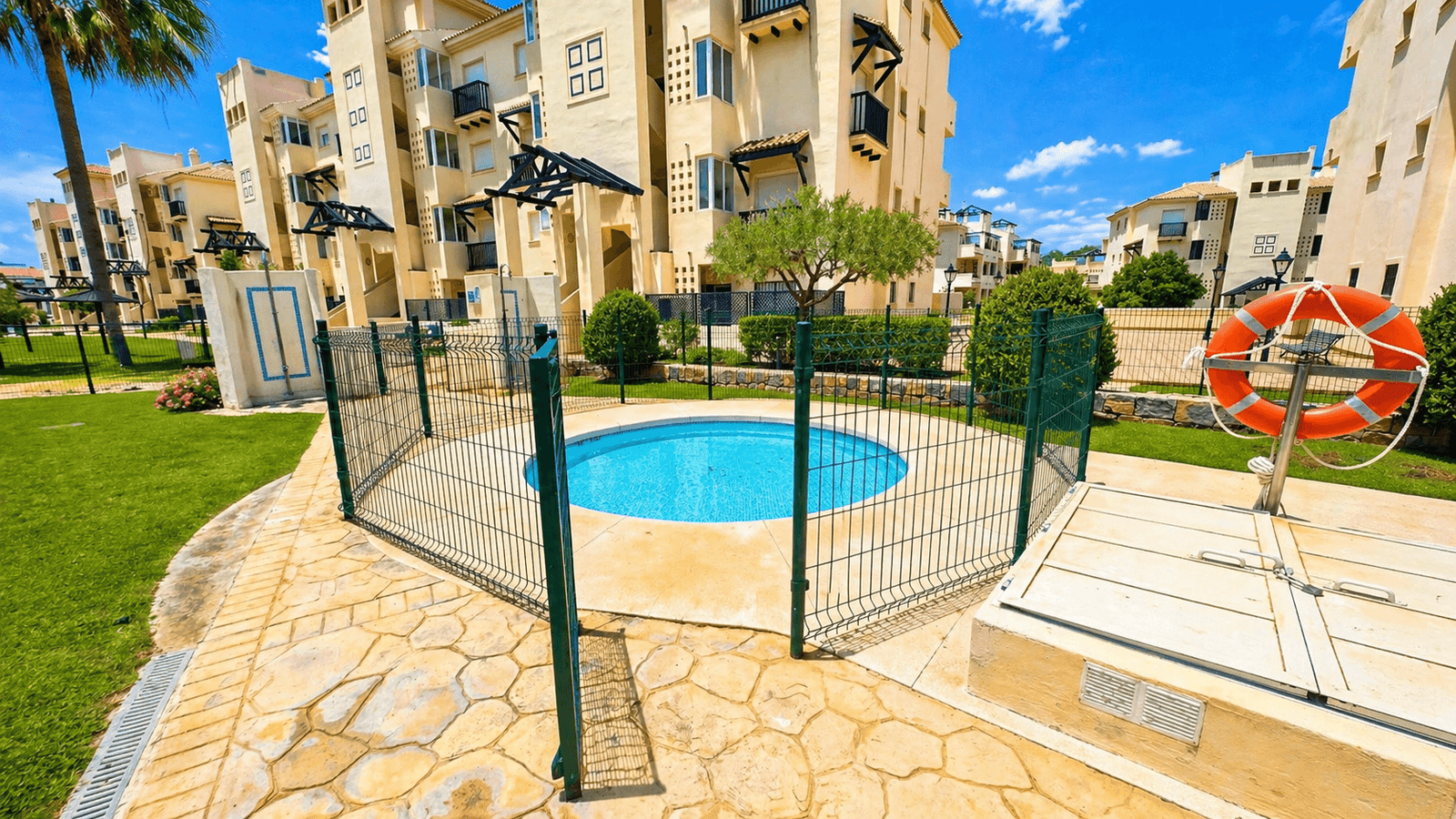 Residencial Duquesa is a well-maintained gated community with landscaped gardens, a communal pool and a children’s pool. The apartment is one of only two homes on its floor and one of six apartments in the block, which gives the building a quieter residential feel.
