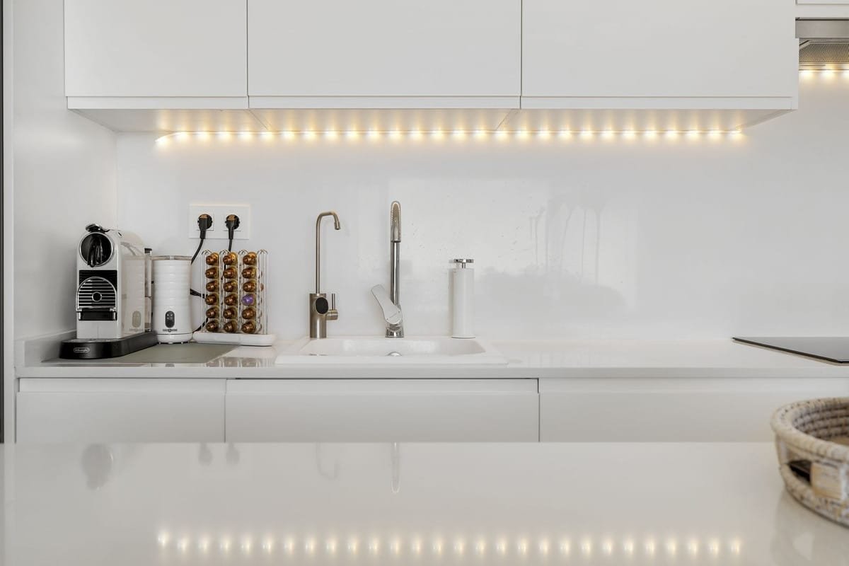 The penthouse is arranged around a modern open-plan kitchen that connects naturally to a bright and spacious living area, creating an easy flow for both day-to-day living and entertaining. This layout makes the main living space feel open and sociable, while the large windows and terrace access help bring in natural light throughout the property.